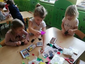 ,,Barbórka” to święto górników, obchodzone 4 grudnia na cześć św. Barbary, patronki górników. Tego dnia, grupa pięciolatków dowiedziała się jak wygląda praca w kopalni, jak ciężka i niebezpieczna, a jednocześnie ważna i potrzebna jest praca górnika. Dzieci zgadywały jakie odgłosy towarzyszą w codziennej pracy górnikom: odgłos młota pneumatycznego, stukanie kilofa, ładowanie węgla oraz wybuch dynamitu. Przedszkolaki poznały również strój roboczy i odświętny górnika, a na pamiątkę tego dnia wykonały małe czako – czapkę górniczą. Wiele emocji wzbudzał wybór koloru pióropusza, bo jak się okazuje, kolor noszonych na czako piór, zależy od zajmowanej pozycji. Tak więc, mamy w naszej grupie zarówno górników dyrektorów, górników pracujących na przodku oraz członków orkiestry górniczej.