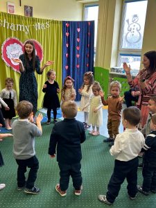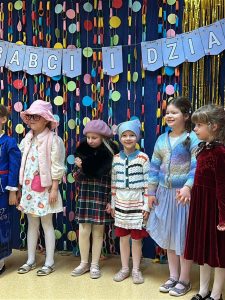 W miesiącu lutym w grupach przedszkolnych odbyły się wyjątkowe uroczystości. Gościliśmy najmilszych sercu gości – Babcie i Dziadków, którzy licznie przybyli, aby podziwiać występy swoich wnucząt. Dzieci z wielkim zaangażowaniem recytowały wierszyki oraz śpiewały piosenki. Przedszkolaki zaprezentowały również układy choreograficzne. Po występach wnuczęta wręczyły upominki, a spotkania zakończyły się wspólną herbatą i słodkim poczęstunkiem, co było doskonałą okazją do rozmów i zacieśniania rodzinnych więzi.
