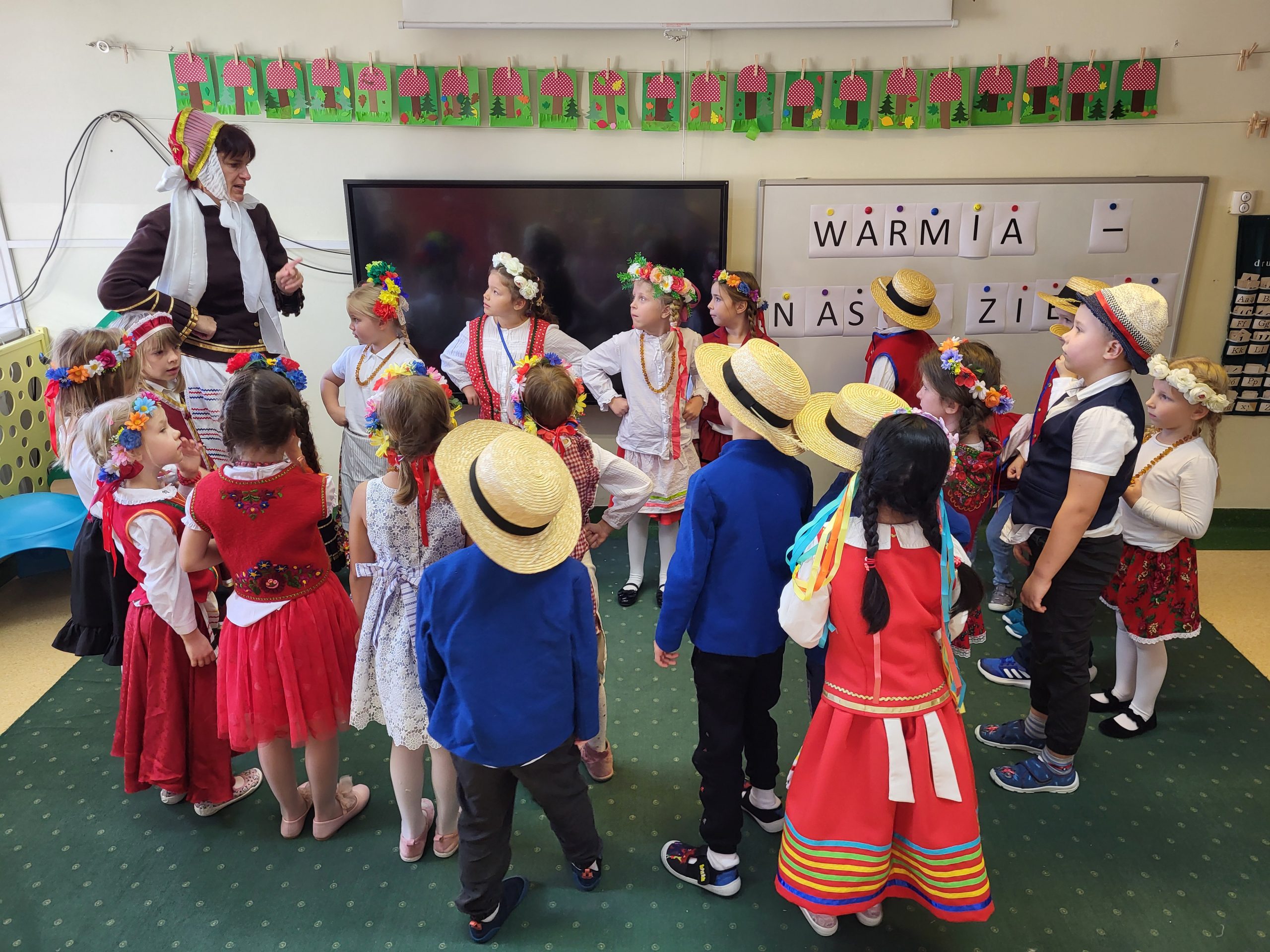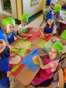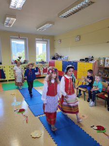 Tydzień regionalny w grupie 6-latków przebiegł niezwykle ciekawie i wesoło. Dzieci miały mnóstwo zabawy i atrakcji, takich jak: pokaz mody regionalnej, pieczenie ciasteczek warmińskich, zajęcia z rękodzieła oraz wycieczka do Kojrysa, podczas której dzieci mogły pojeździć na koniu i bryczką, zwiedzić chatę warmińską, zobaczyć dawne maszyny używane do pracy w polu, wziąć udział w wykopkach, pieczeniu kiełbasek, ziemniaków oraz na sam koniec w zabawie tanecznej.