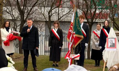 Mjr Jan Guzik – Patronem szkolnego katyńskiego Dębu Pamięci 17 kwietnia 2026 Dla uczczenia ofiar zbrodni katyńskiej, siedem lat temu, posadziliśmy na terenie szkolnym Dąb Pamięci (13